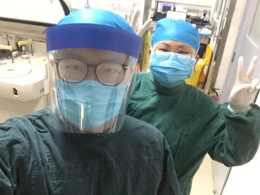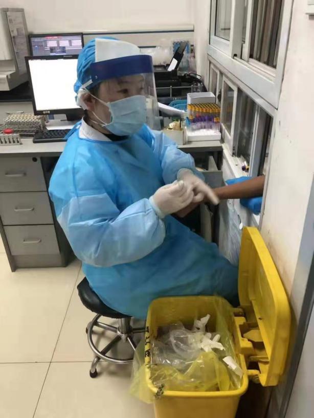 疫情发生以来,为进一步加强疫情医疗救治工作,医院优化发热门诊患者就诊流程,方便病人就诊、隔离和预防交叉感染,检验团支部在院党委、团委及检验党支部的带领下,迅速组织团员青年积极投入抗击疫情第一线。杨晗、易凡、郝帅三位青年同志更是主动请缨到一线参与救治工作。从接到组织新型冠状病毒发热门诊指令的那一刻起,他们就承担起发热患者的标本采集工作,冒着被感染的风险,成为了这场战斗的主力军。她们每天穿着密不透风的防护服,高负荷工作十二个小时,为每一位前来就诊的发热患者及时采集标本,在此工作期间吃不了饭,喝不了水,上不了卫生间。当同事们接替下班后,他们脱下这一身白色“铠甲”,大家一个个都是满脸压痕、浑身湿透。