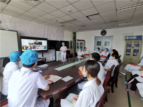 支部邀请援鄂英雄张晓翠讲党课《尽医者誓言 守疫情一线》,分享她的入党初心及援鄂经历,聆听她们奔赴武汉抗疫一线的感人事迹,进一步筑牢支部党员理想信念。她说,“十多个小时的高强度工作,我们的防护服下全身湿透,脸上耳朵上留下了深深的勒痕以及水泡,手也因为带橡胶手套时间过长,发生皮疹。长时间的疲惫工作好多队友都生病了,但大家依然坚持上班,没有一个人退缩”。身为一名年轻的预备党员,张晓翠立足本职,充分发挥先锋模范作用,用实际行动践行着自己入党的初心和誓言。