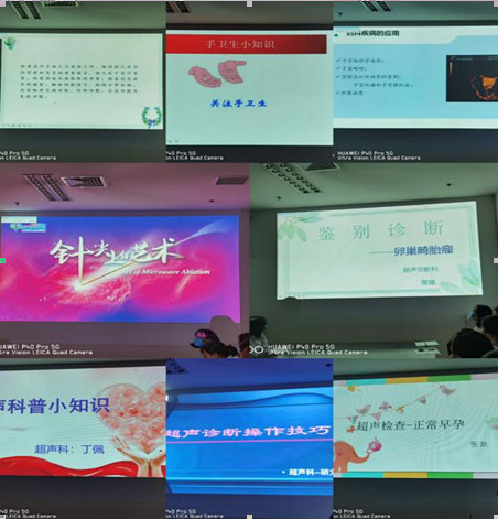 “晒比拼超——青年医师小讲课”比赛共9名医护人员以PPT演讲的方式进行。授课内容丰富多彩,包括超声操作技巧、卵巢畸胎瘤鉴别诊断、超声造影科普、超声引导下介入术的应用等等。各位青年医师通过精彩生动的演讲,体现出他们对此次比赛的重视,也展现出他们朝气蓬勃、勤奋好学的精神面貌。现场精彩纷呈,高潮迭起。