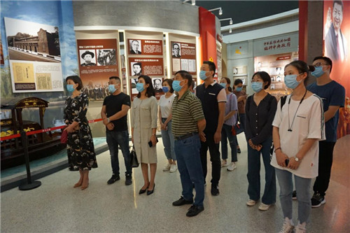 参观中途,全体人员再一次在党旗下庄严宣誓。牢记入党誓词,不忘初心使命,缅怀革命先驱,增强爱国意识,树立大公无私的忘我精神。