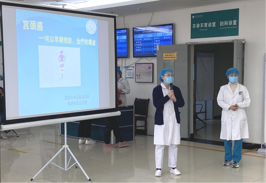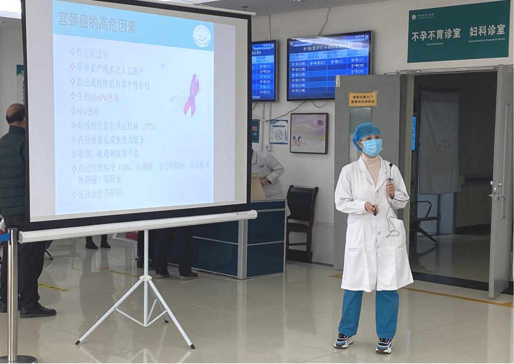 1月13日,乐鱼在线登录入口门诊第17期健康教育大讲堂走进妇科,围绕宫颈癌知识,为现场女性朋友开展了一场专题讲座。此次活动由门诊部护士任思静主持,妇科副主任医师师萍萍主讲。