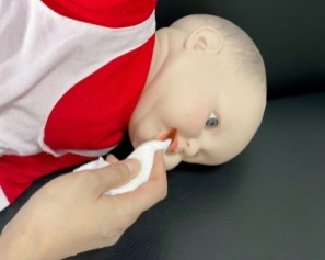 清理口鼻:使用干净、柔软的纱布或湿巾轻轻将宝宝口腔内吐出物清理,可用棉棒轻轻清理鼻孔内呛出物,以保持呼吸道通畅。