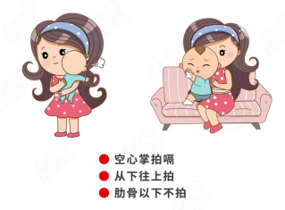 处理口诀:面朝下、趴前臂、清口鼻、畅气道、连叩击、奶排出、面红润。