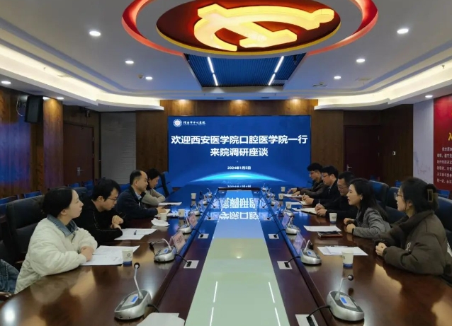 为进一步强化院校合作,推进医院学科发展及人才培养,1月5日下午,西安医学院口腔医学院党总支副书记周晓华,口腔解剖生理学教研室主任张耀超,口腔修复教研室教师方远鹏,辅导员曲建利一行四人来院座谈交流。市中心医院党委副书记党继革及科教科、口腔科负责人参与座谈。