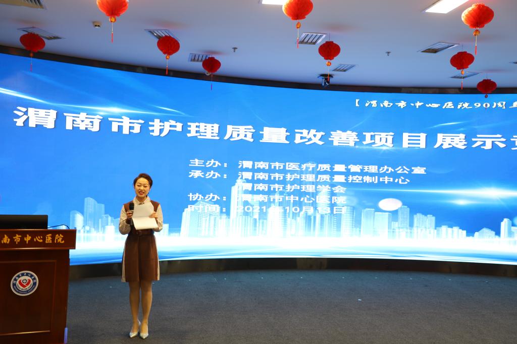 为适应现代护理管理新形势、新发展,分享和展示护理质量改善成效,坚持聚焦问题、创新引领,10月13日下午,由渭南市医疗质量管理办公室主办、市护理质量控制中心、市护理学会承办的“全市护理质量改善项目展示竞赛”在市中心医院学术报告厅举办。市卫生健康委员会副主任徐萌新,市中心医院院长张进社,党委副书记党继革,市护理质控中心主任、市中心医院副院长黄慧玲莅临现场。全市30余家医疗机构护理管理者、护理骨干线上线下观摩竞赛。开幕式由市护理质控中心副主任、市中心医院护理部主任高亚梅主持。