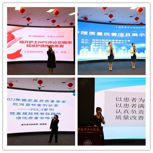 竞赛现场,选手们精神饱满、热情洋溢、语言清晰流畅,从选题背景、实施过程、取得成果等方面进行精彩展示,配以图文并茂的PPT演示,汇报现场亮点纷呈,展示出护理人优秀的专业素质。