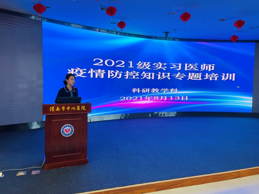 为深入贯彻落实医院疫情防控工作新要求,进一步强化实习医师院感防控各项措施,8月13日下午,市中心医院组织对全院实习医师进行疫情防控知识专题培训,全院94名实习医师参加培训。