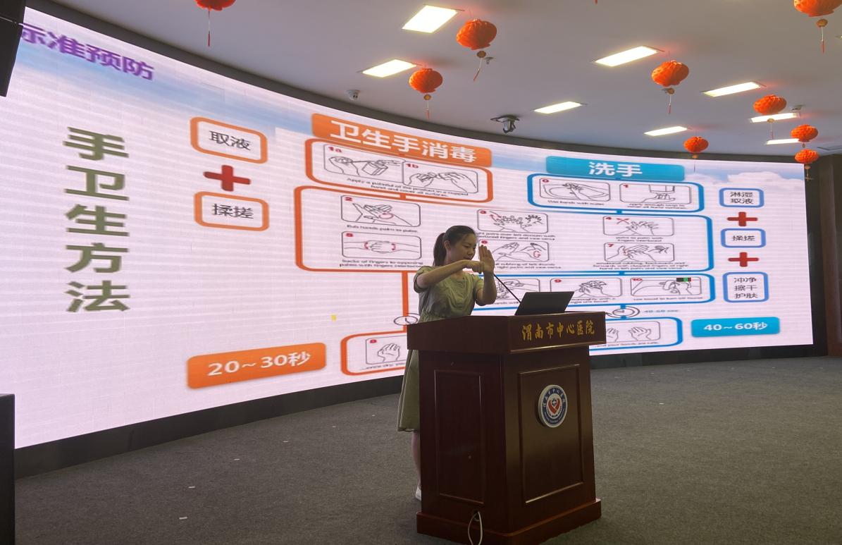 全科教学秘书传达医院疫情防控各项要求,讲解内外同防、医患同防、人物同防三防融合等防控策略。重点培训了标准预防重要环节,示范正确的七步洗手法等,同时对医务人员防护用品选用原则做了详细介绍。