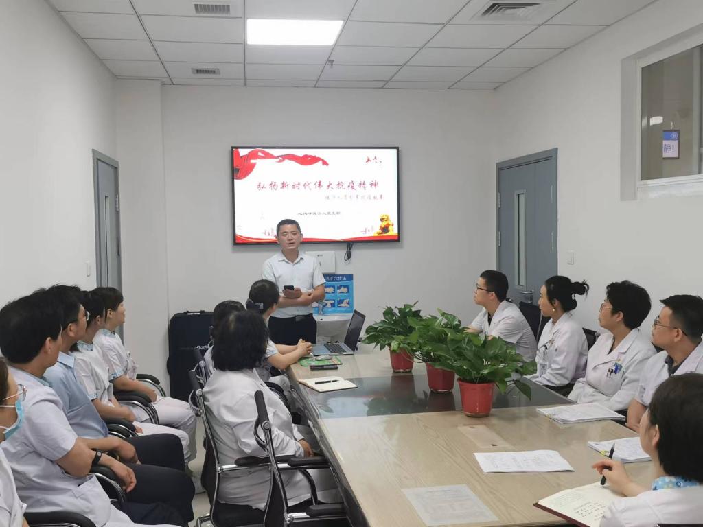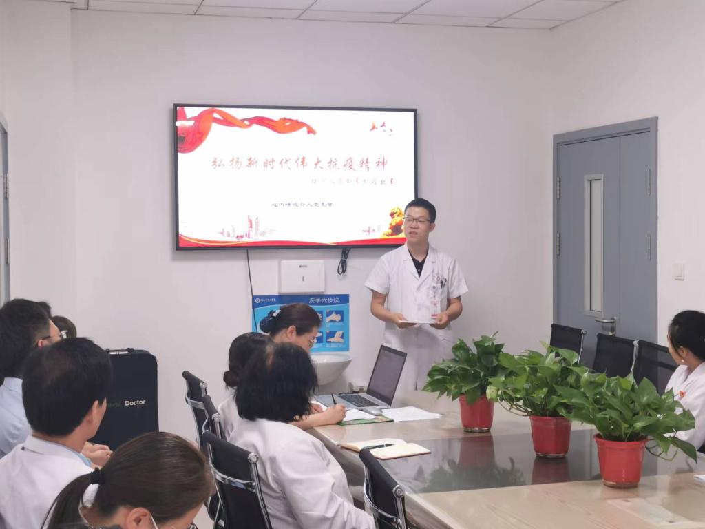 为大力弘扬援沪医疗队员先进事迹和不畏风险、大爱无疆的精神,引导支部党员干部立足岗位、永担职责使命。心内呼吸介入支部中援沪队员党员吴水淼、发展对象袁丽、积极分子王浩志分享战“疫”经历、工作感受和感人故事。他们用朴实的语言,从不同角度、不同层面讲述在战疫前线经历的艰难时刻与感人瞬间,字里行间、言语之中涌动着医者仁心的大爱情怀,透射出坚韧顽强的意志品质。一个个感人故事,一幕幕暖心瞬间仿佛再次呈现,与会人员无不为他们的勇敢和吃苦耐劳精神感动,为他们点赞。