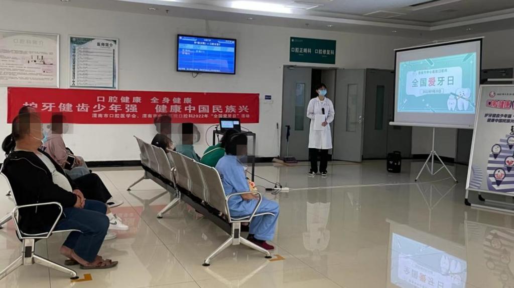 9月17日,口腔科医师在候诊大厅通过PPT演示方式为患者及其家属围绕爱牙日主题进行科普讲解,为民众普及口腔健康相关知识,使大家意识到口腔健康对全身健康的重要性。