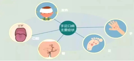手足口病的主要症状是皮疹伴或不伴发热,以手、足、臀皮疹及口痛为特征。口腔黏膜疹出现较早,为粟米样斑丘疹或水疱;手、足、臀部等部位成簇出现或平或凸的斑丘疹或疱疹,无疼痛瘙痒。