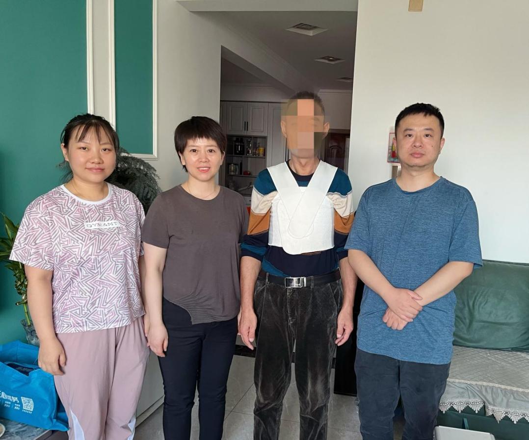 陈先生是一位A型主动脉夹层行全弓置换术后患者,已过花甲之年,却依然精神矍铄。刚进房间,就能感受到儿女们对老人的细心和孝心,整洁的卧室内按区域摆放着电动病床、助行器、血压计、口服药等常用物品,物品繁多却井然有序。